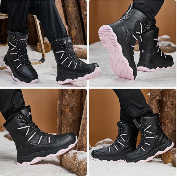 These boots keep feet warm, dry, and protected in harsh winter conditions. They feature a waterproof exterior, anti-slip sole, and soft faux fur lining for all-day comfort. Lightweight materials make walking effortless.