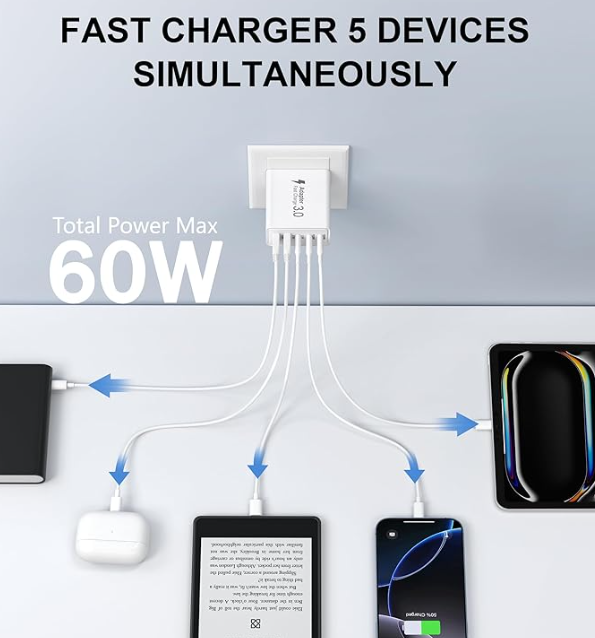 πΉ 8. 60W 5-Port USB-C Fast Charger (2-Pack) β Power Everything at Once